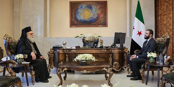 Jolani launched his own ‘charm’ offensive, probably coached by the MI6-linked operatives in Damascus. He met with Greek Orthodox Patriarch John X. Yazigi at the People’s Palace, Damascus. The meeting provided Jolani with the ‘inclusive’ optics, but many on social media pointed out the minor details of ‘disappeared’ Archbishops back in 2013. “Ahmed Al Sharaa, aka Jolani, head of the Syrian terror regime, is responsible for the abduction of the two Orthodox Archbishops of Aleppo: Mor Gregorius Yohanna Ibrahim and Paul Yazigi”. Jolani has never addressed this issue or been pressured to provide information on the Archbishops.