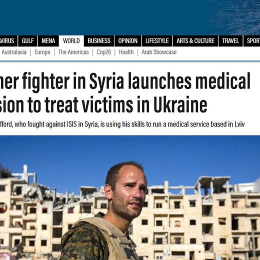 Who is Macer Gifford, the British mercenary who has fought in Iraq, Afghanistan and Syria now heading to Ukraine to “do something for Britain”. Gifford likes to be portrayed as a former London City investment banker from Cambridge and Conservative Party councilor who, aged 27, had a “goldilocks” moment, broke up with his partner, pulled out of a house purchase and was smuggled over the Iraqi/Syria border. From there he fought alongside the Kurdish Separatist YPG backed by the US Coalition including Israel as part of the project to annex Syrian territory, occupy Syrian oil fields and to partition Syria into sectarian statelets.