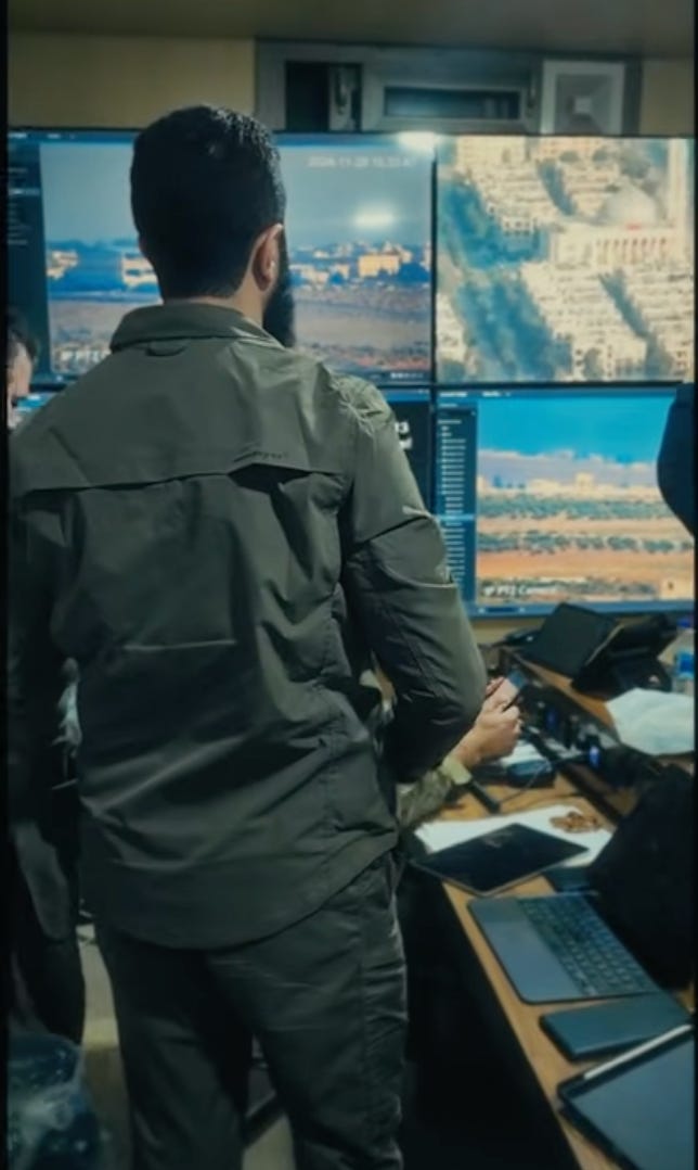 The documentary also provides insight into the level of support that Jolani received from hostile intelligence agencies - MI6, CIA, Mossad, MIT etc. Here, below, is just one screenshot of the “operations rooms” where Jolani watched the battles unfold. Another aspect revealed (unintentionally) by the documentary is that HTS encountered FIERCE RESISTANCE from the Syrian Arab Army, certainly not the immediate collapse described by Putin after the fall of Damascus - and then repeated by social media and so-called independent journalists ad infinitum. I will write more on this.